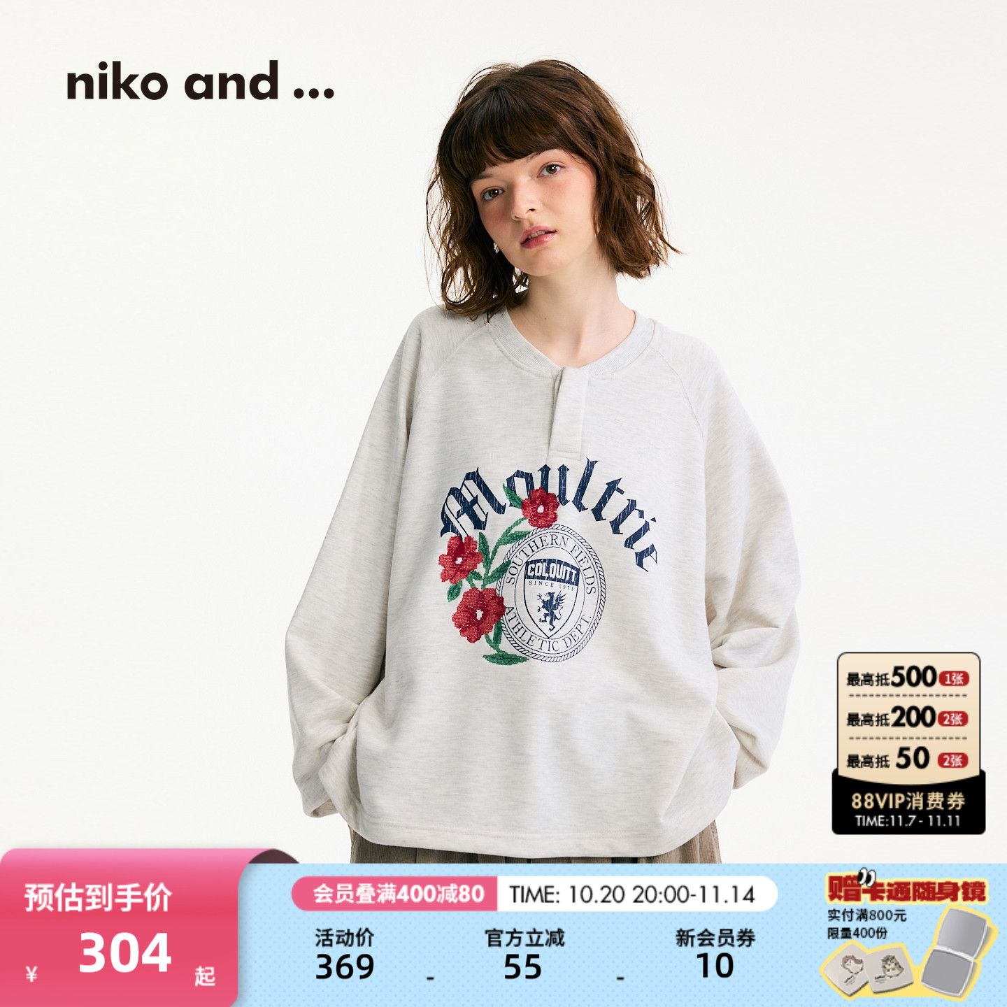 niko and ...卫衣女2025秋冬新款休闲亨利领刺绣圆领上衣596338