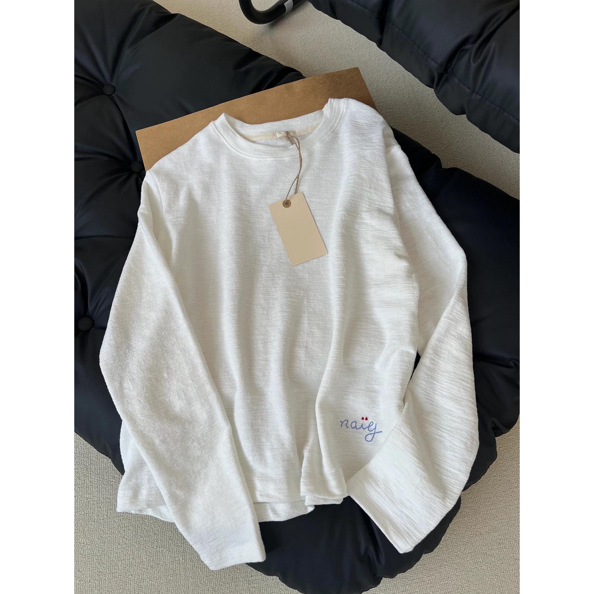 闭眼入系列!白色下摆刺绣T恤衫女春夏新款韩系超舒服轻绵打底衫