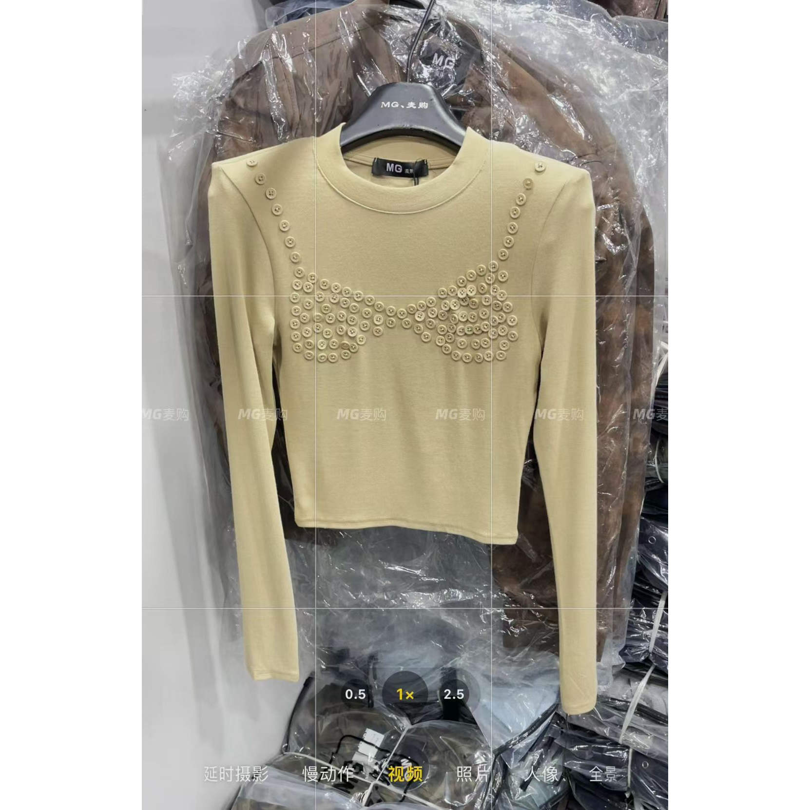 捡漏~专柜撤柜纯色长袖T恤衫女春秋季百搭宽松显瘦休闲打底衫上衣