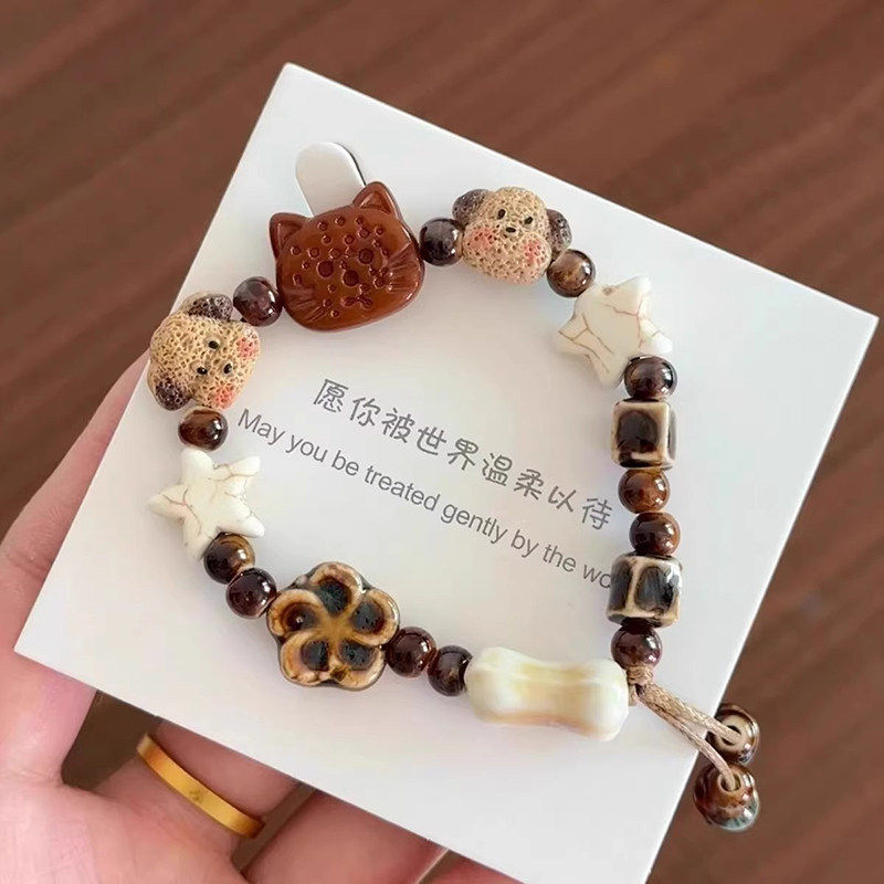 新款小猫手链情侣diy手工流行时尚串珠送闺蜜女友甜美手串礼物
