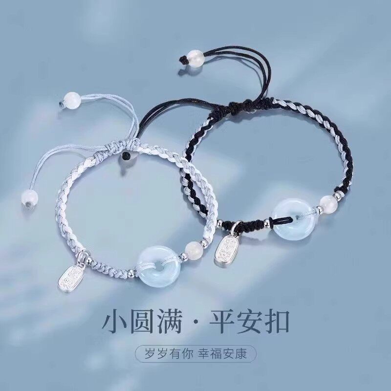 小圆满平安扣2024爆款新品中式海蓝宝编织绳福牌手链情侣闺蜜礼物