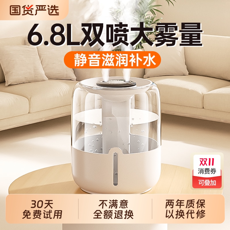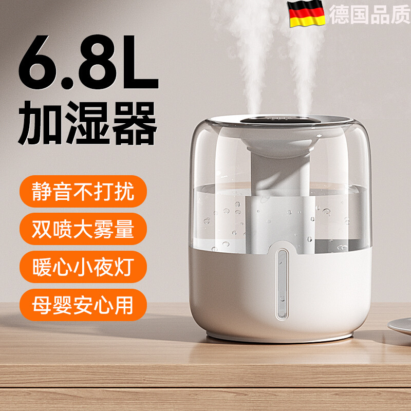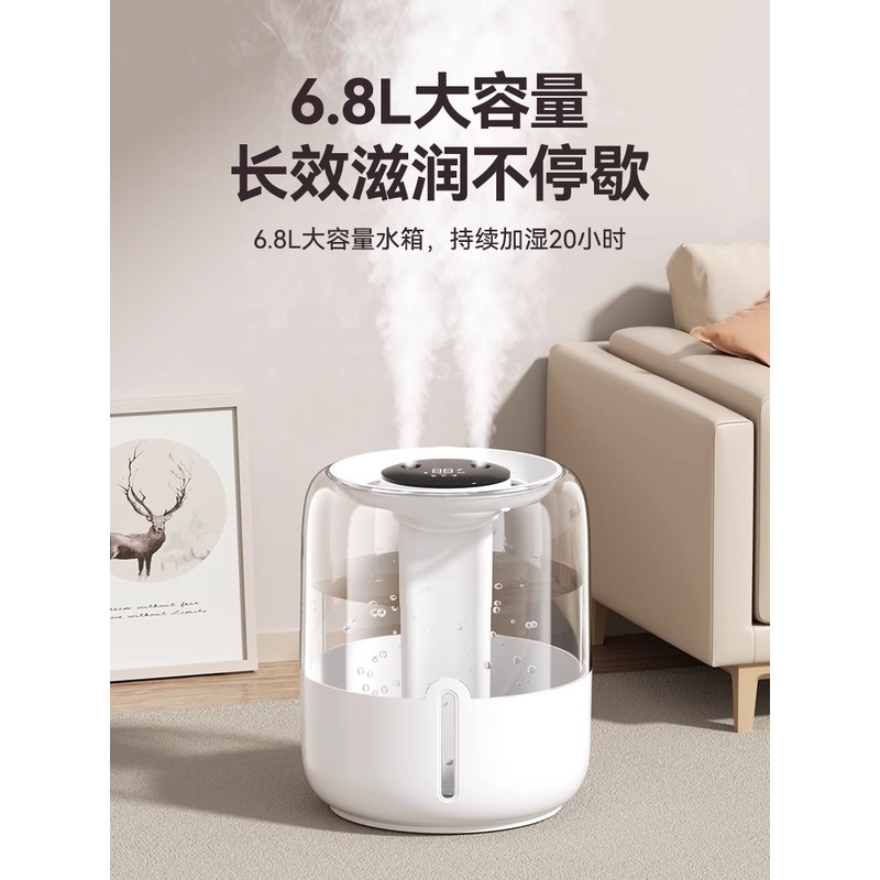 6.8L大容量加湿器大雾量家用卧室静音办公室桌面香薰机usb便携孕妇婴儿补水空气加湿净化喷雾宿舍用2025新款