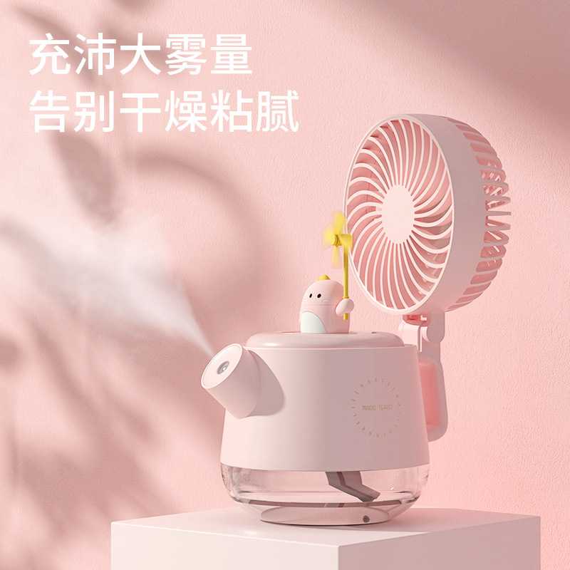 新款直销新款萌宠水壶喷雾风扇 四合一桌面USB充电大容量加湿器风