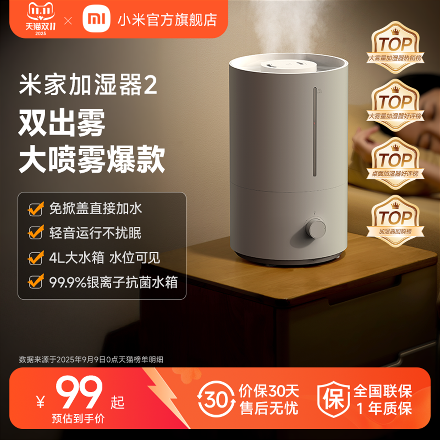 【50万+收藏】小米官旗米家加湿器2家用大容量卧室空气加湿大喷雾