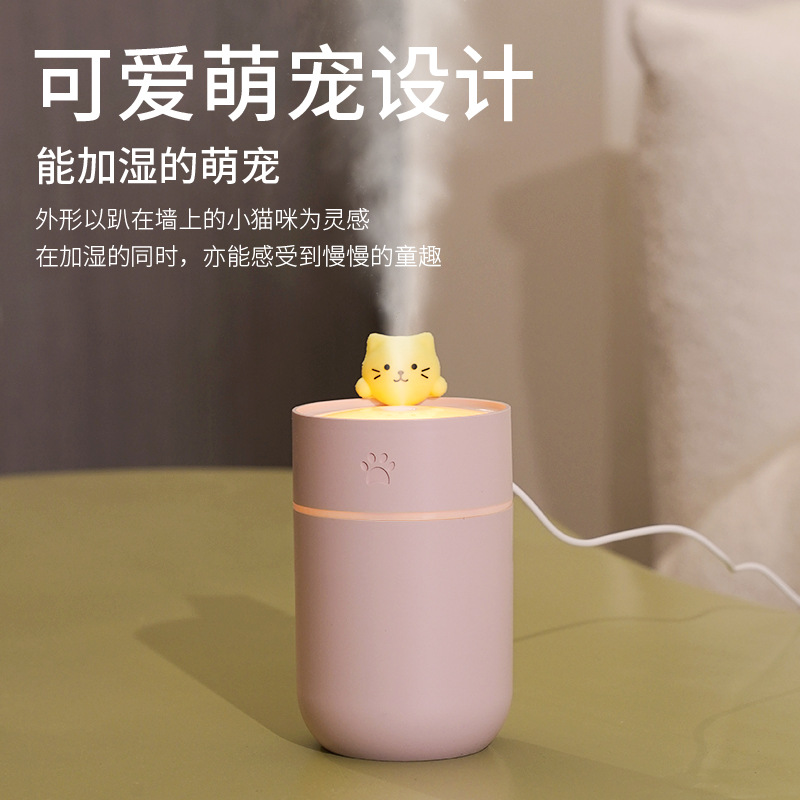 新款大容量加湿器USB双喷雾家用宿舍办公室卧室桌面带小夜灯礼品