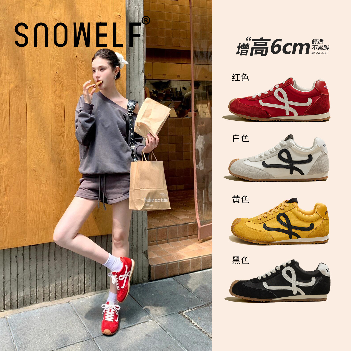 森达糯米糍德训鞋女美式撞色内增高复古红色多巴胺阿甘鞋女运动鞋