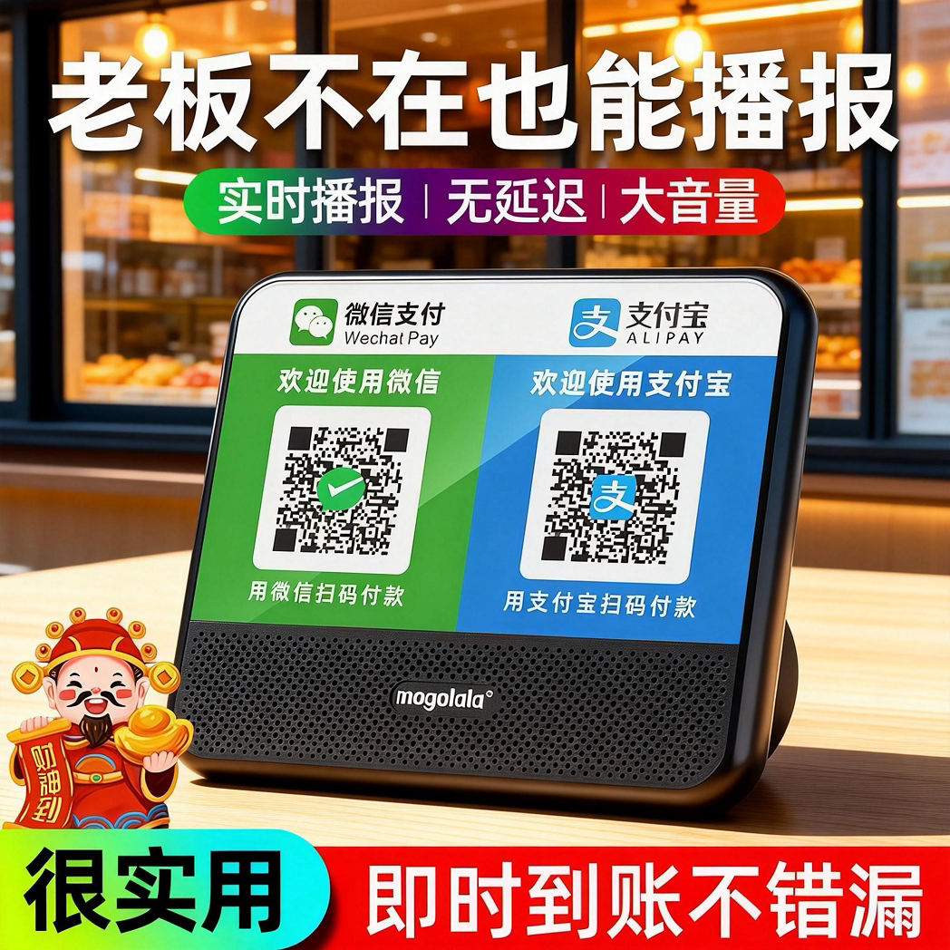 2026新款微信收款音响支付宝收钱二维码蓝牙音箱店铺用语音播报器