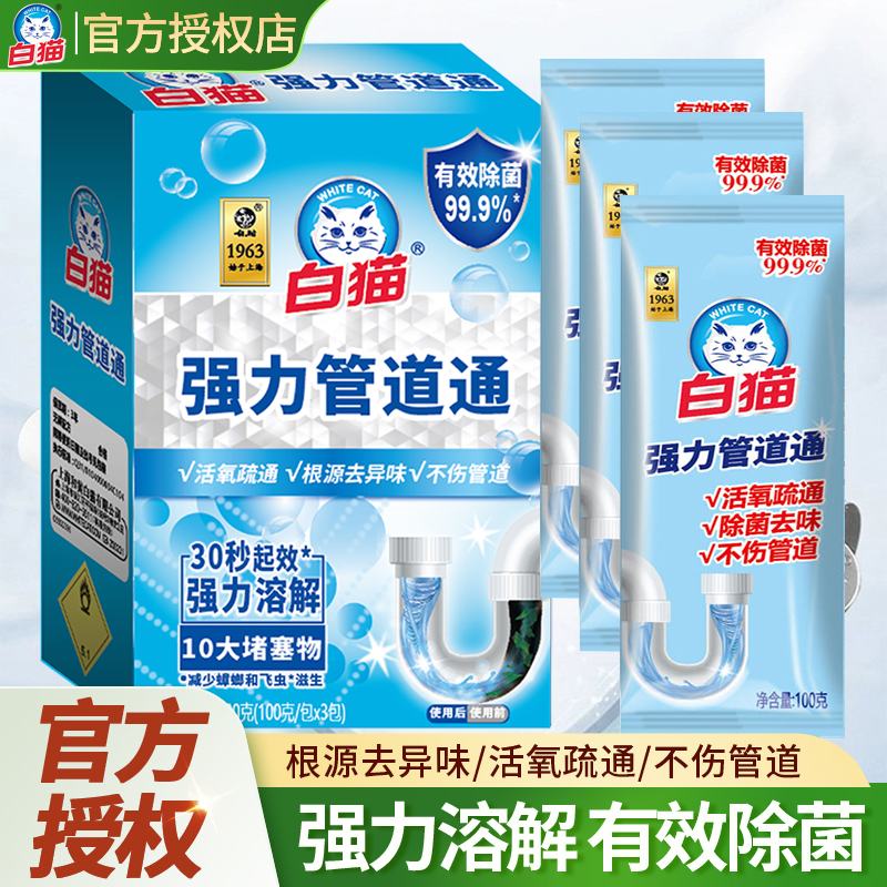 白猫强力管道通疏通粉强力溶解下水道除菌去味浴室厨房水槽疏通剂