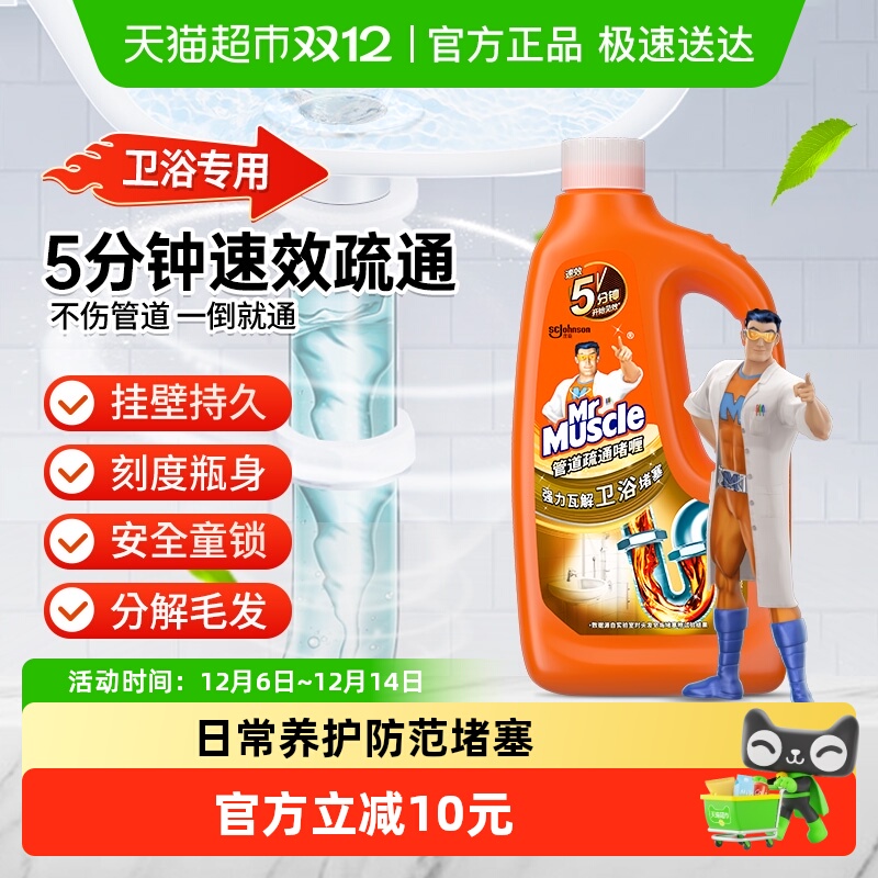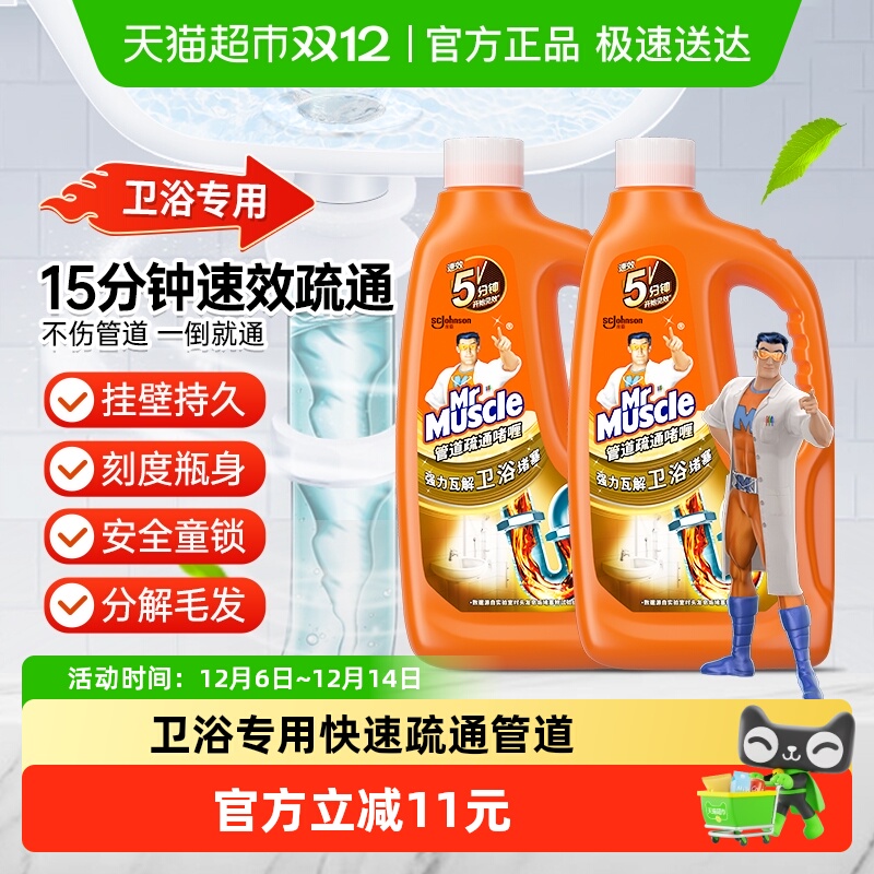 威猛先生速效管道疏通啫喱卫浴专用管道通960ml*2瓶溶解毛发皂垢
