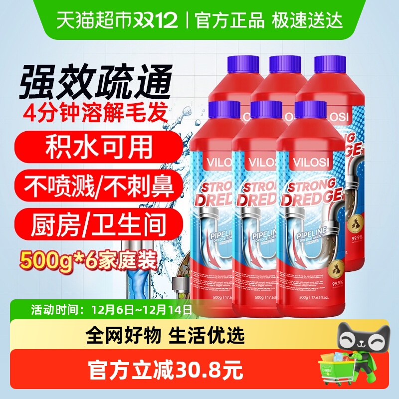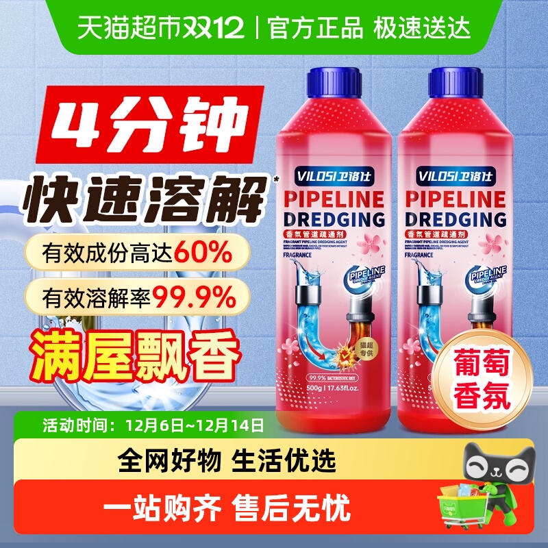 vilosi管道疏通剂管道通堵塞厨房油污浴室强力溶解马桶下水道除臭