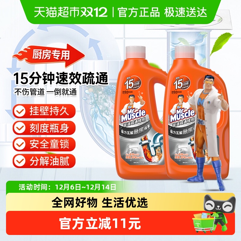 威猛先生管道疏通剂厨房专用管道通960ml*2减少异味速效不伤管道
