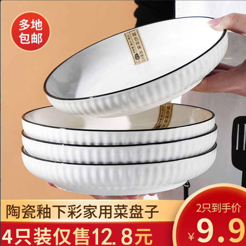 4只盘子9.9元家用陶瓷菜盘北欧风格简约圆形菜碟创意深盘餐具套装