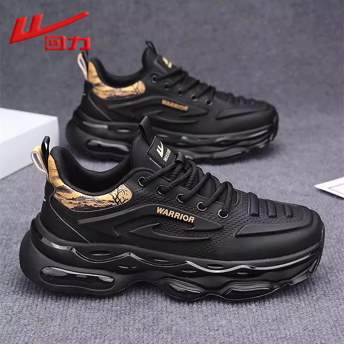 回力男鞋2025秋季新款气垫减震厚底耐磨黑武士透气运动跑步鞋男款