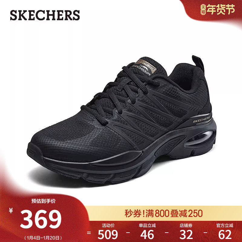 斯凯奇春季男款百搭休闲运动鞋轻质吸震厚底舒适支撑空气垫跑步鞋
