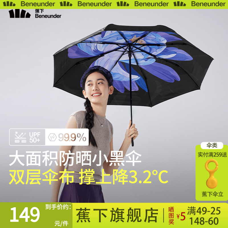 蕉下遮阳伞女防晒防紫外线小黑伞小巧便携官网双层三折黑胶太阳伞
