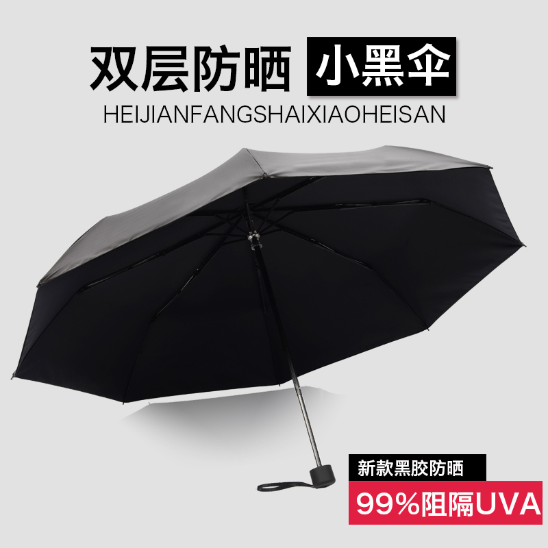 天堂伞黑胶防晒防紫外线女神遮太阳伞男士三折叠晴雨伞两用小黑伞