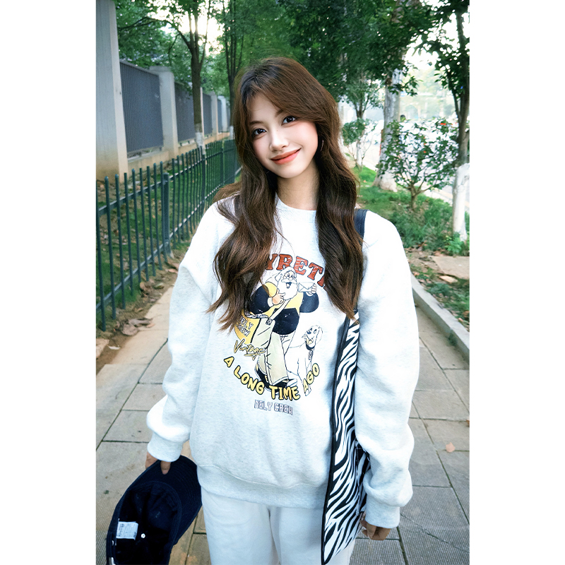 独家饭粒家上衣2025年卫衣bf风原宿卡通休闲加绒上衣女春秋款外套