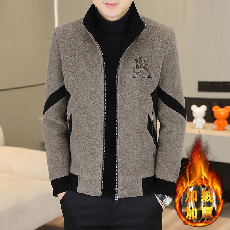 冬季金貂绒加棉夹克男士高级感毛呢大衣男装青年加绒加厚呢子外套