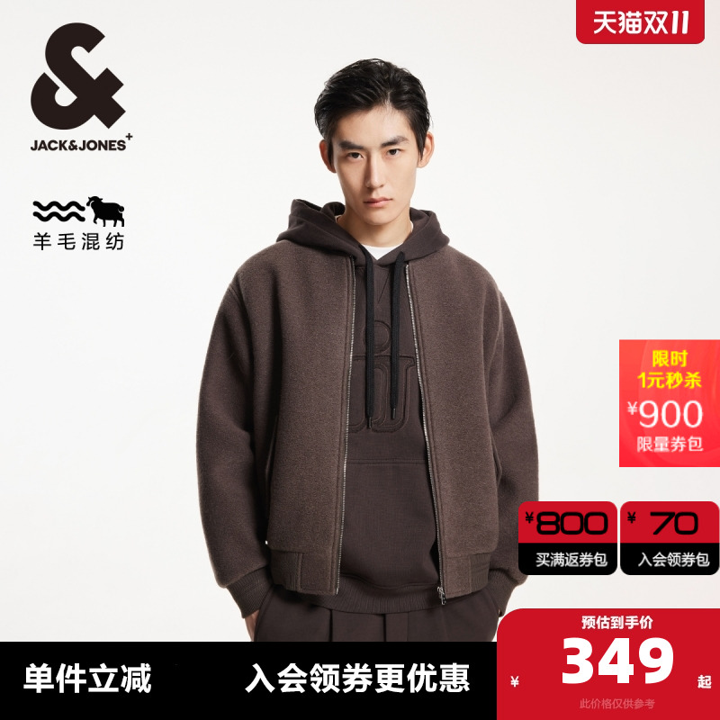 杰克琼斯冬季新款时尚潮百搭休闲宽松棒球领外套长袖毛呢大衣男装