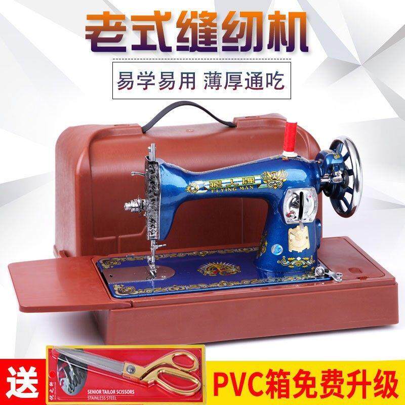 飞人牌缝纫机家用台式电动老式平车吃厚机头脚踏小型迷你手提衣车