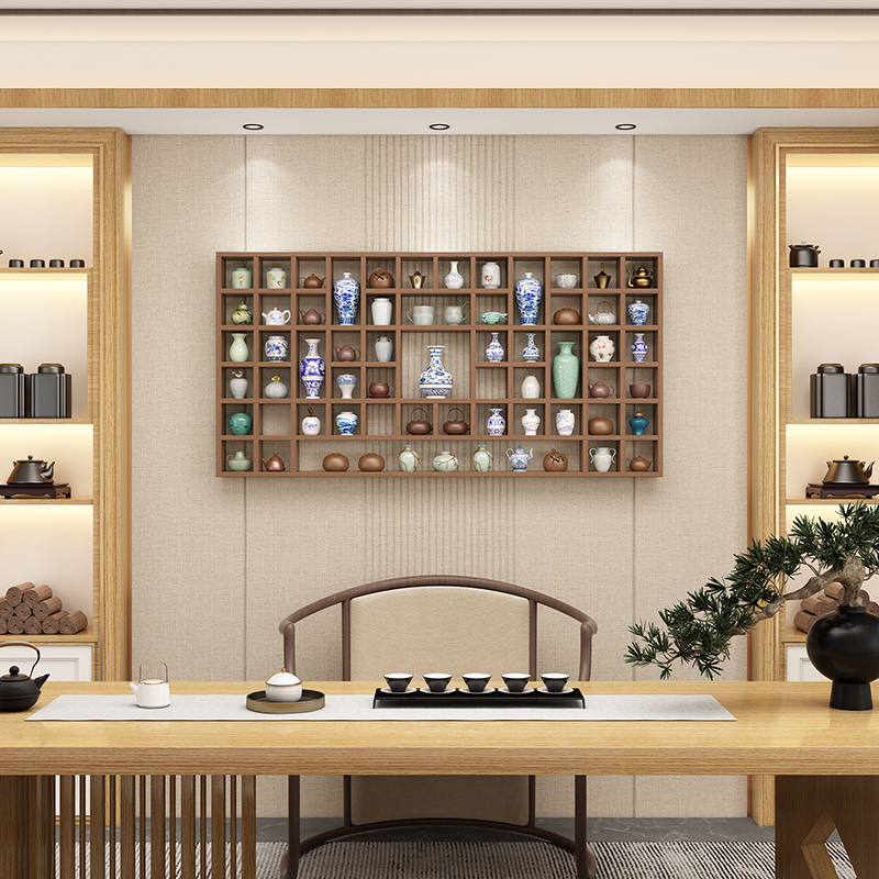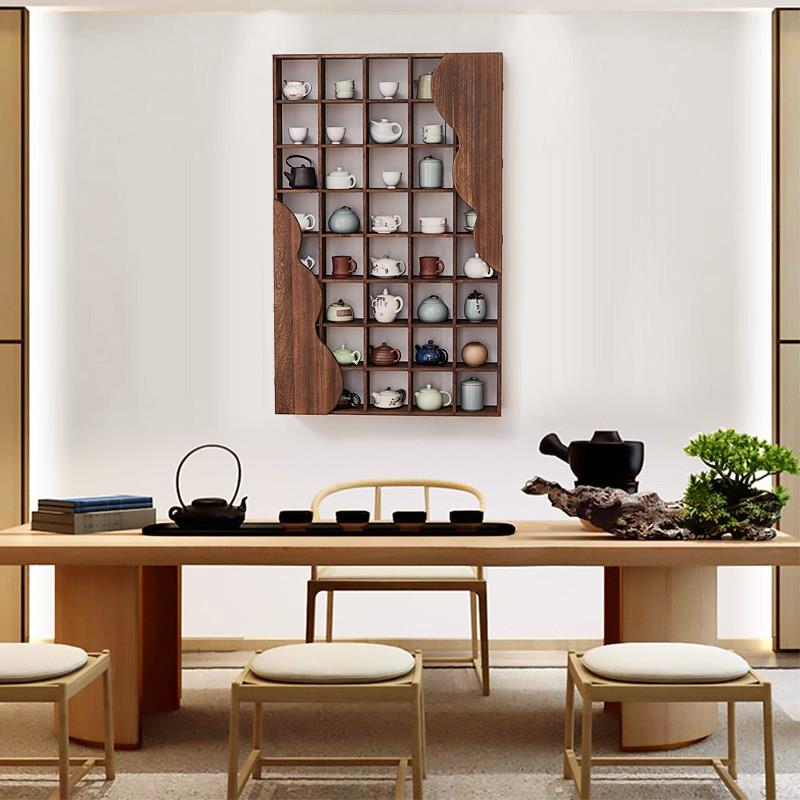 实木格子架墙上置物架壁挂收纳柜茶壶茶杯茶叶展示架多宝阁博古架