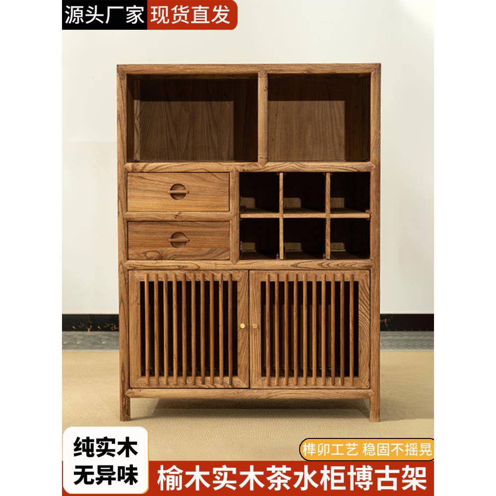 新中式实木茶叶柜北方榆木禅意收纳展示小多宝阁博古架茶边柜白茬