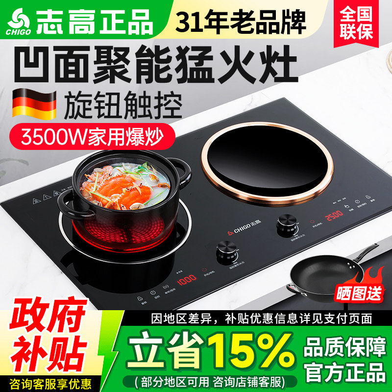 志高2025新款家用凹面电磁炉双灶嵌入式电陶炉一平一凹电磁灶炒菜
