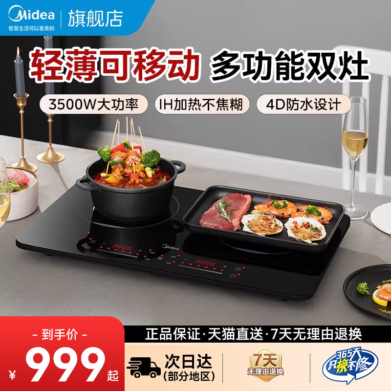 美的双灶电磁炉电磁灶家用3500w大功率双头灶移动式多功能电灶台