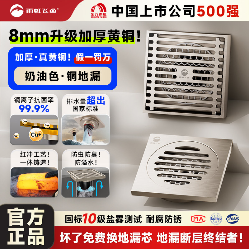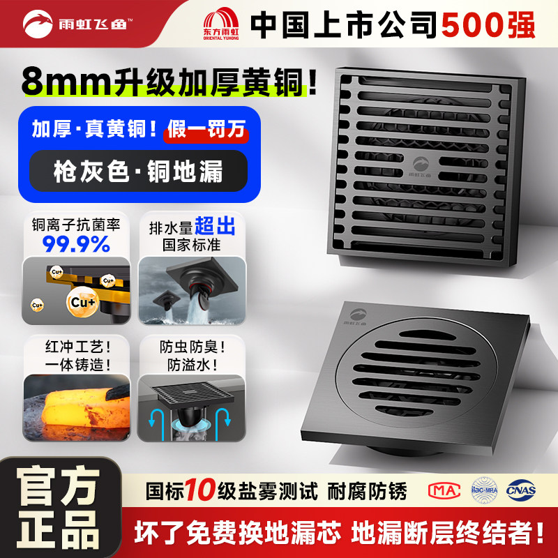 雨虹飞鱼全铜防臭地漏枪灰色卫生间淋浴洗衣机通用下水防返臭神器