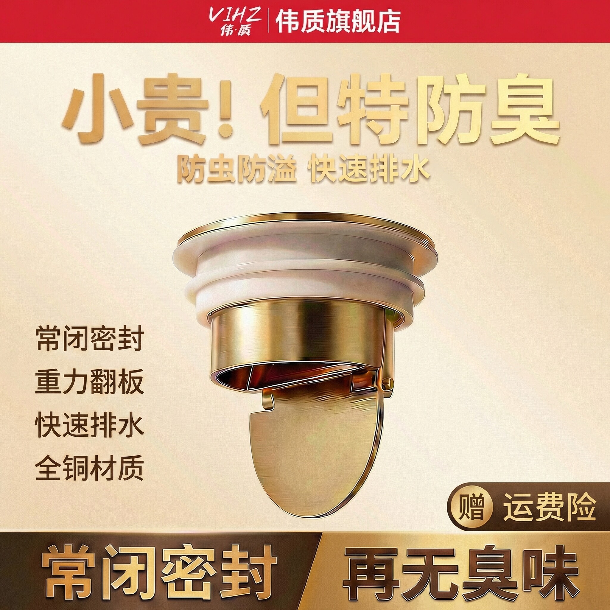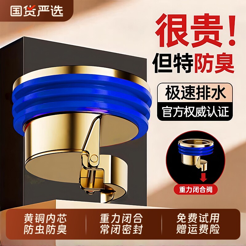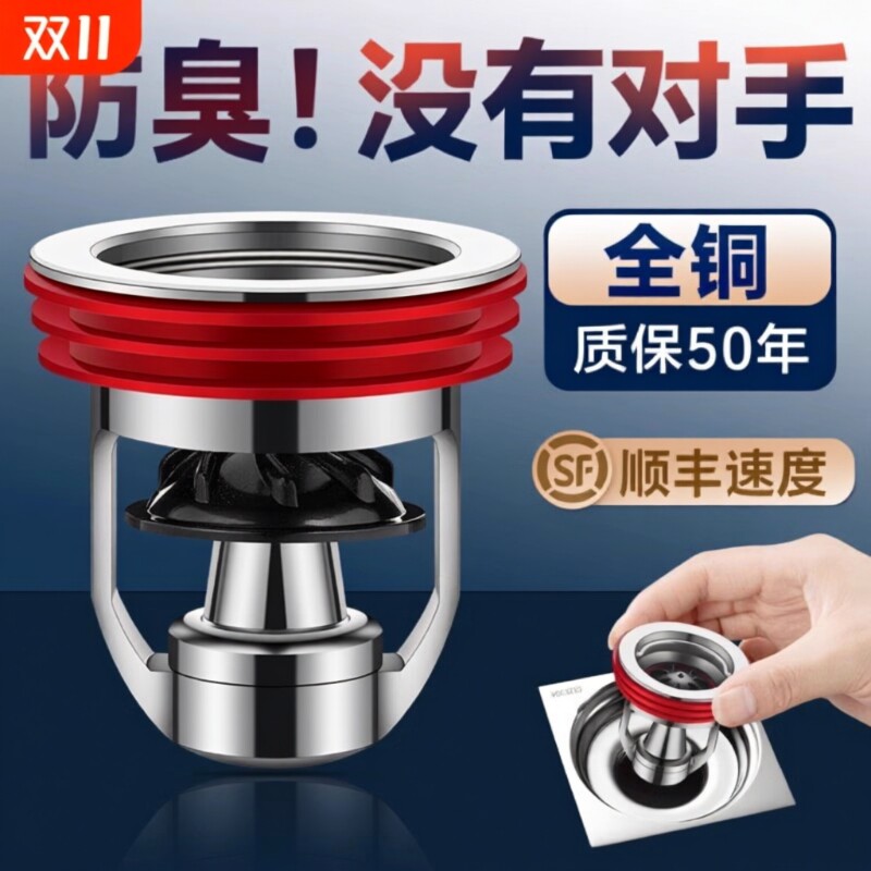 下单立减50】全铜防臭地漏芯 卫生间厨房下水道通用排水防臭神器