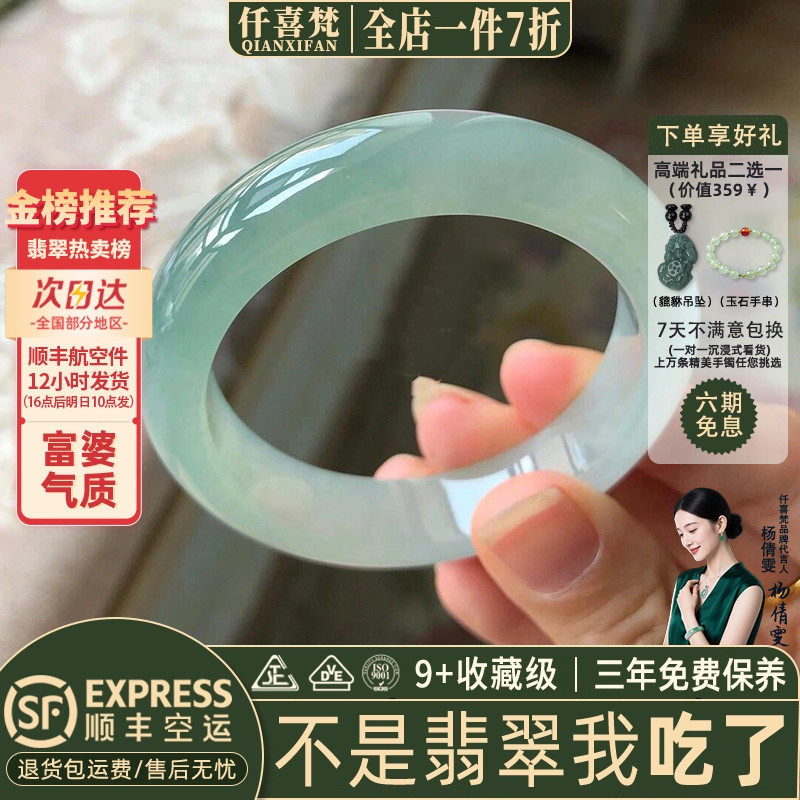 仟喜梵“梦幽篁”高端缅甸翡翠高冰晴水玉手镯子女款贵妃正品处理