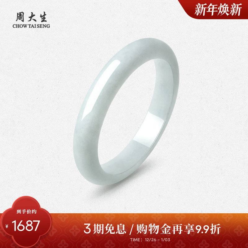 周大生天然翡翠手镯女豆种真玉平安镯新年礼物送女朋友高级送女友