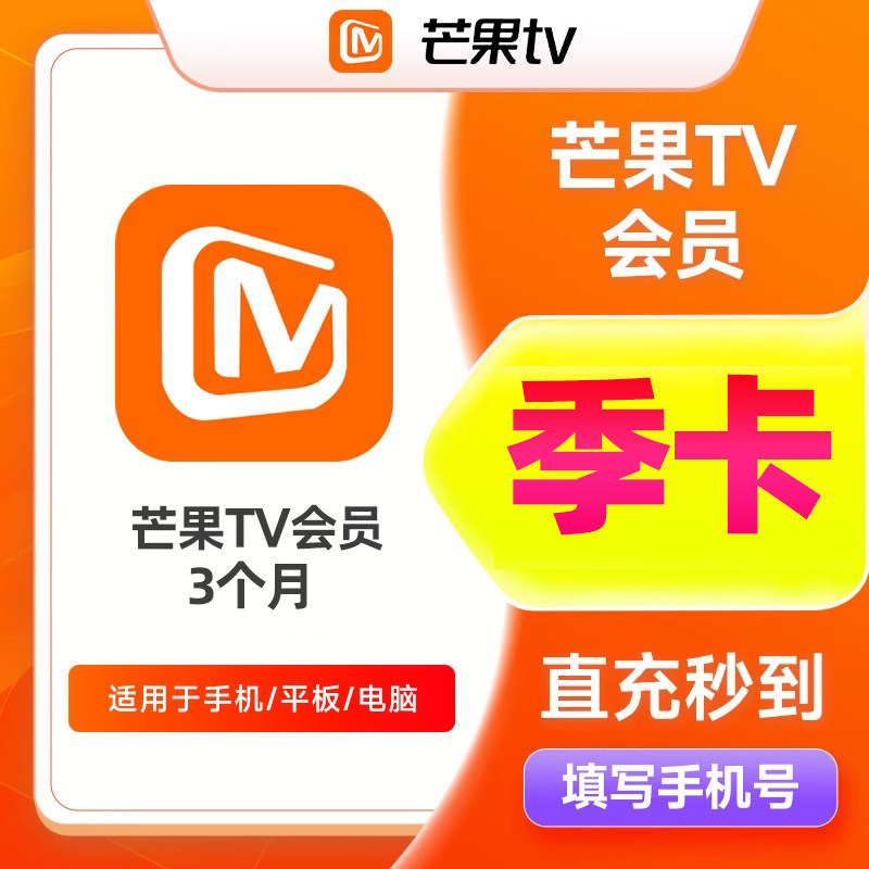 【不支持电视端】芒果TV会员3个月VIP季卡视频会员 填手机号直充