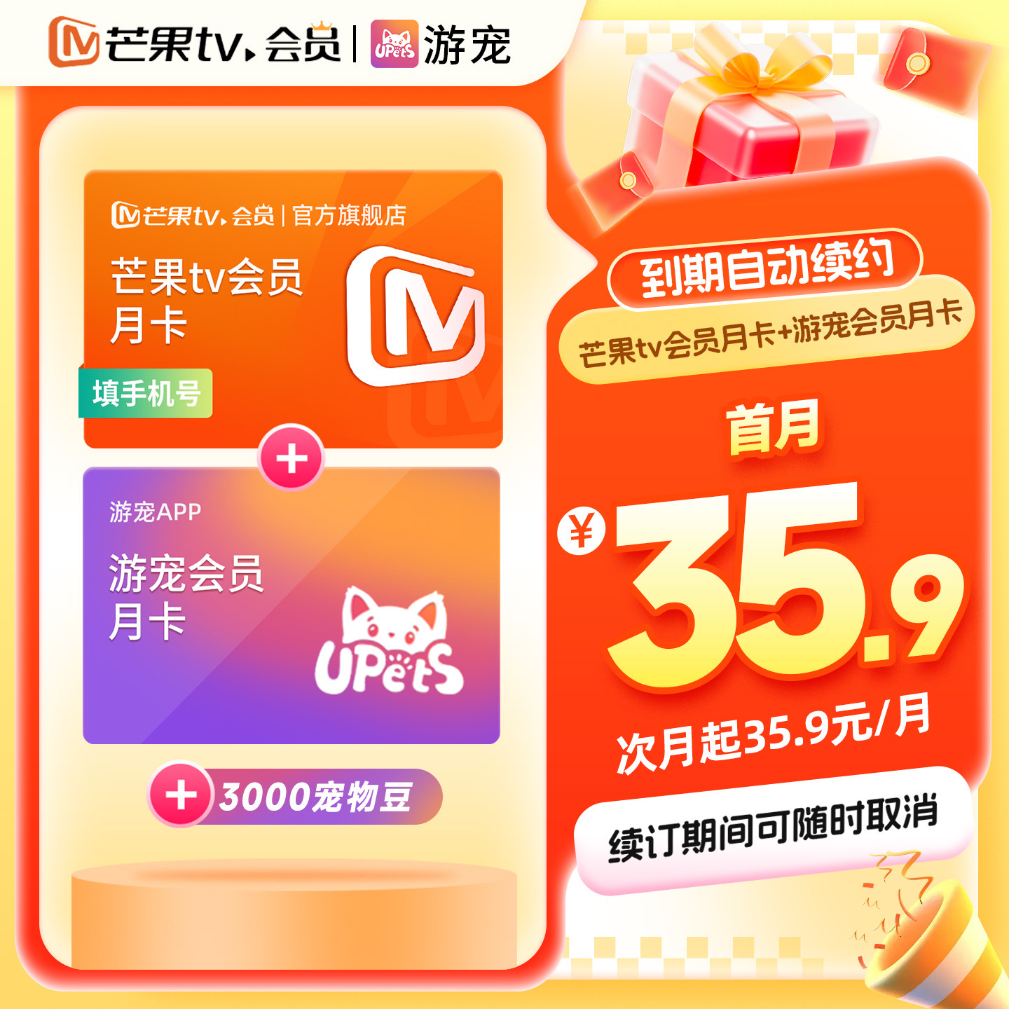 【连续包月】芒果TV会员月卡+游宠会员月卡+3000游宠宠物豆