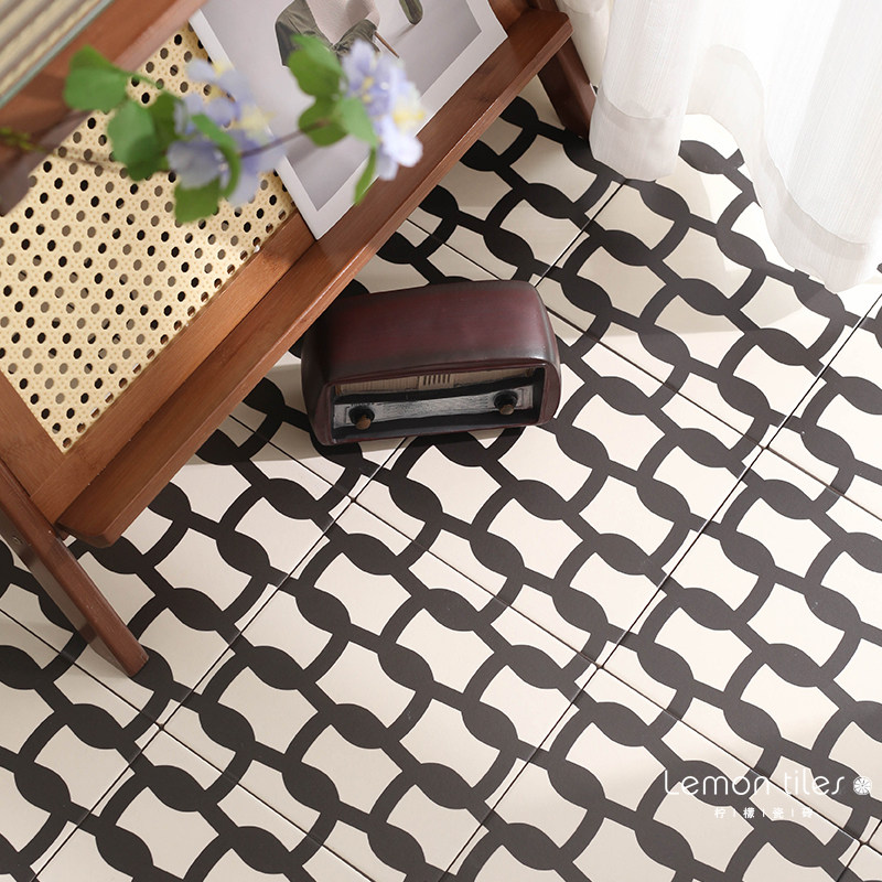 法式复古小花砖卫生间瓷砖中古风黑白厕所浴室洗手间厨房阳台地砖