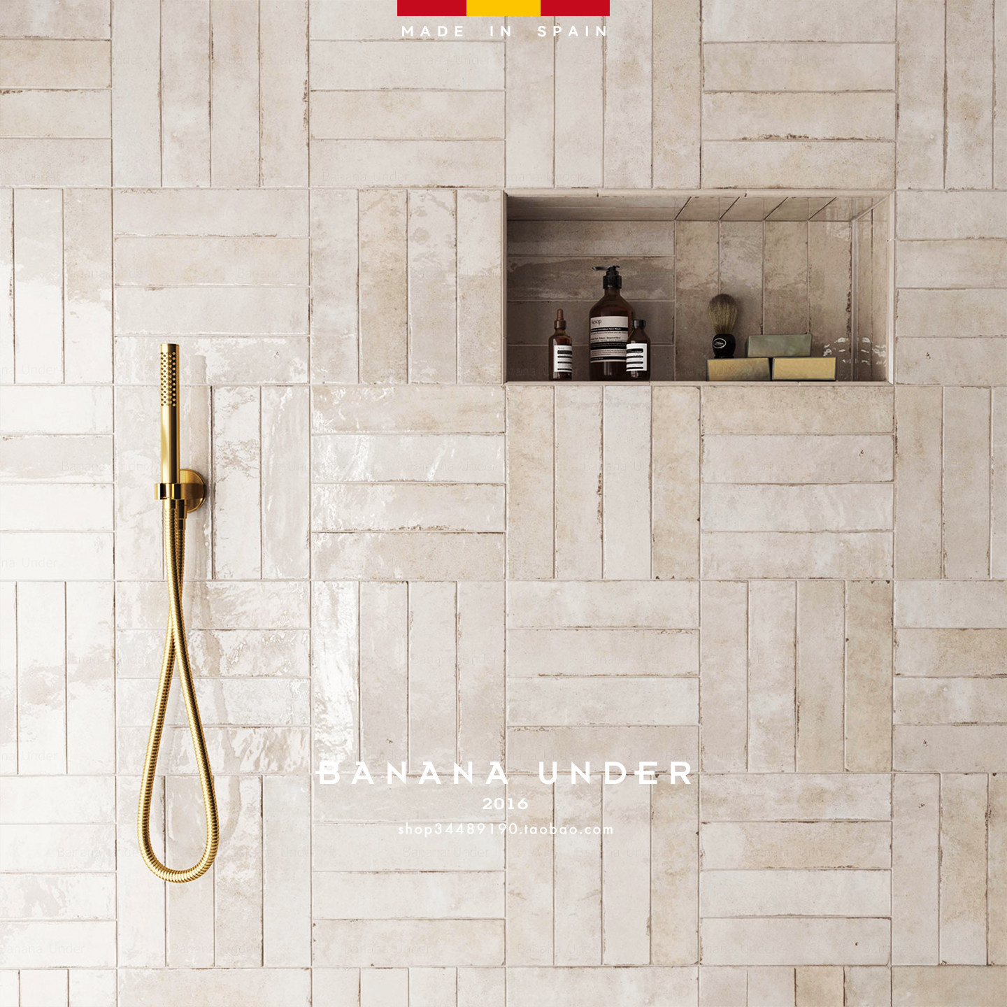 蕉下L西班牙进口珍珠砖法式风复古卫生间瓷砖厨房手工砖长条墙砖