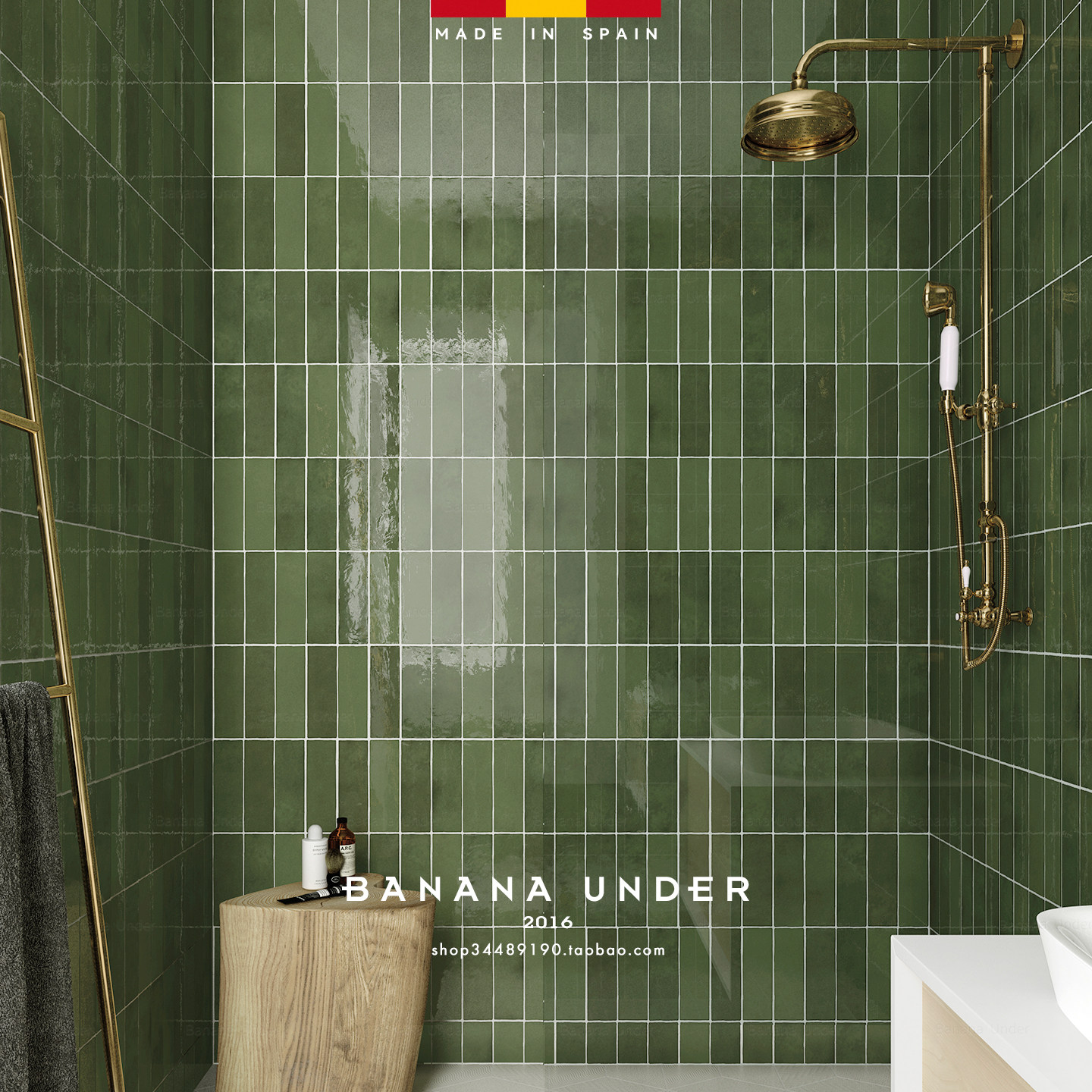 所古复绿色卫生间瓷砖法式中古风浴室墙砖藤蔓绿地长条有砖00x900