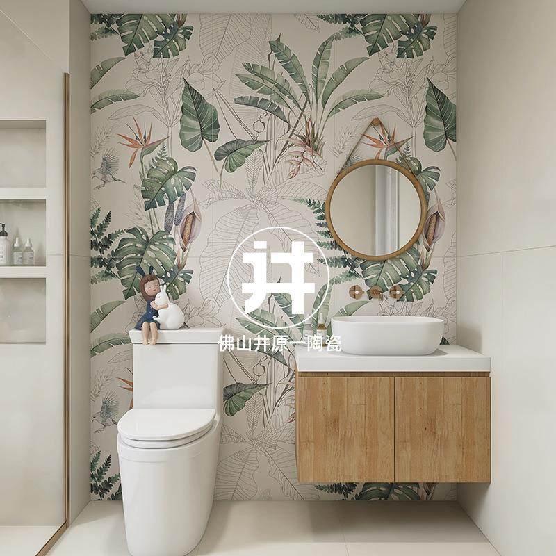 法式卫生间瓷砖绿色植物花砖600x1200复古芭蕉叶墙砖龟背竹浴室砖