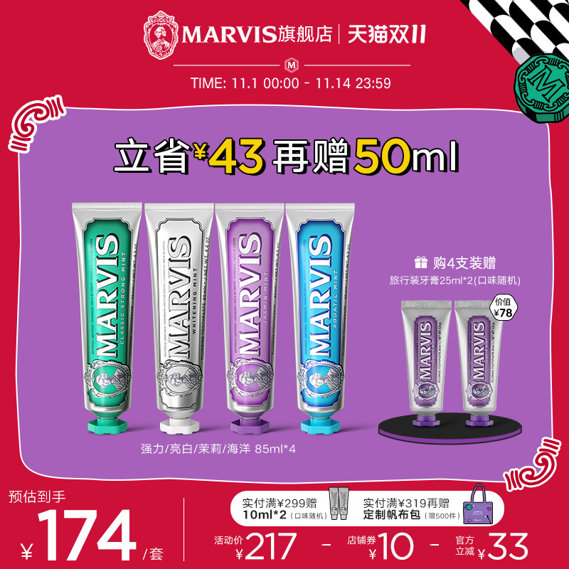 Marvis玛尔仕意大利进口薄荷牙膏85ml美白呵护牙龈清新口气玛尔斯