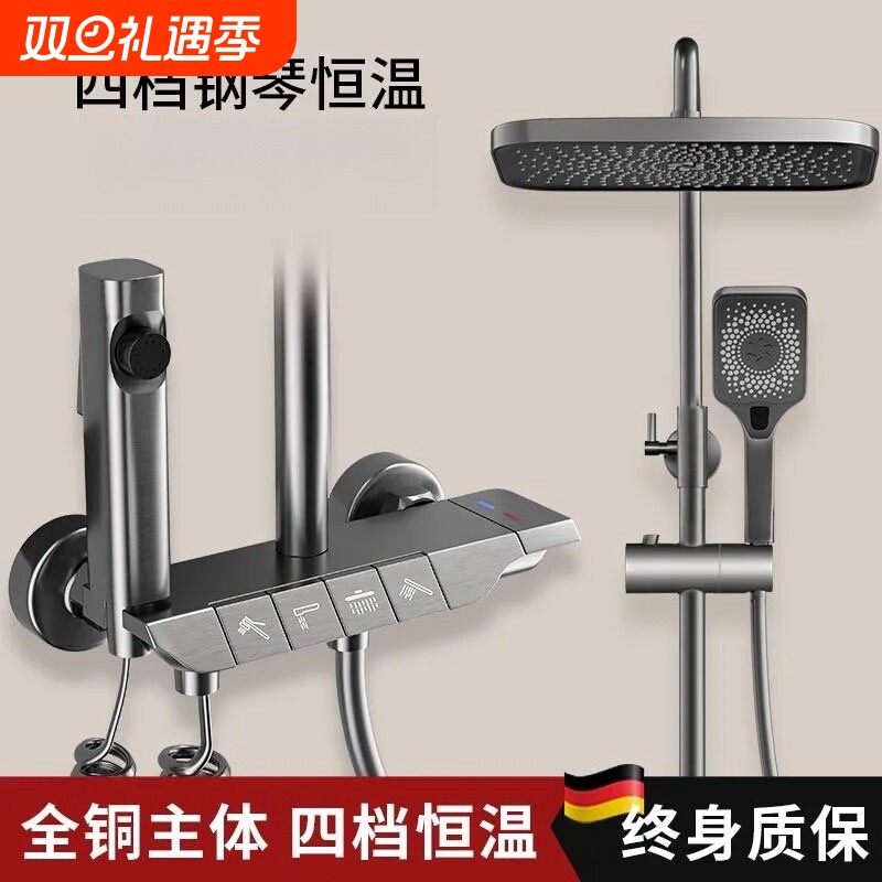 正品全铜淋浴花洒套装家用恒温钢琴键浴室卫浴卫生间淋浴沐浴喷头