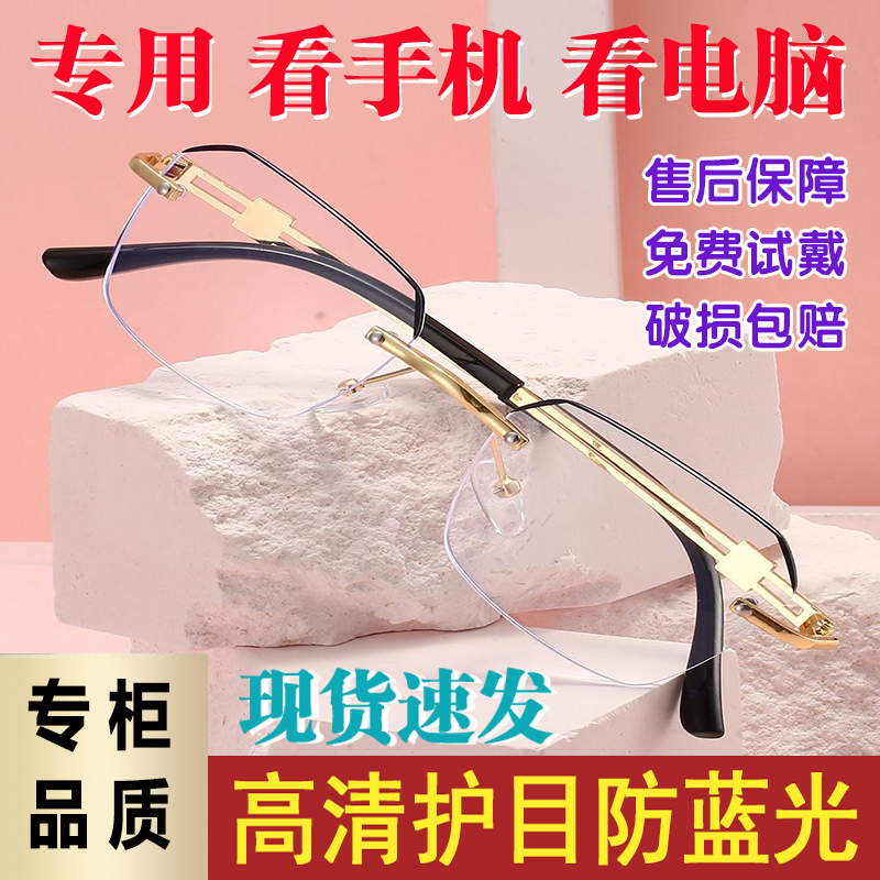 男女同款正品高档老花眼镜时尚无框高清防蓝光老花镜中老年人专用