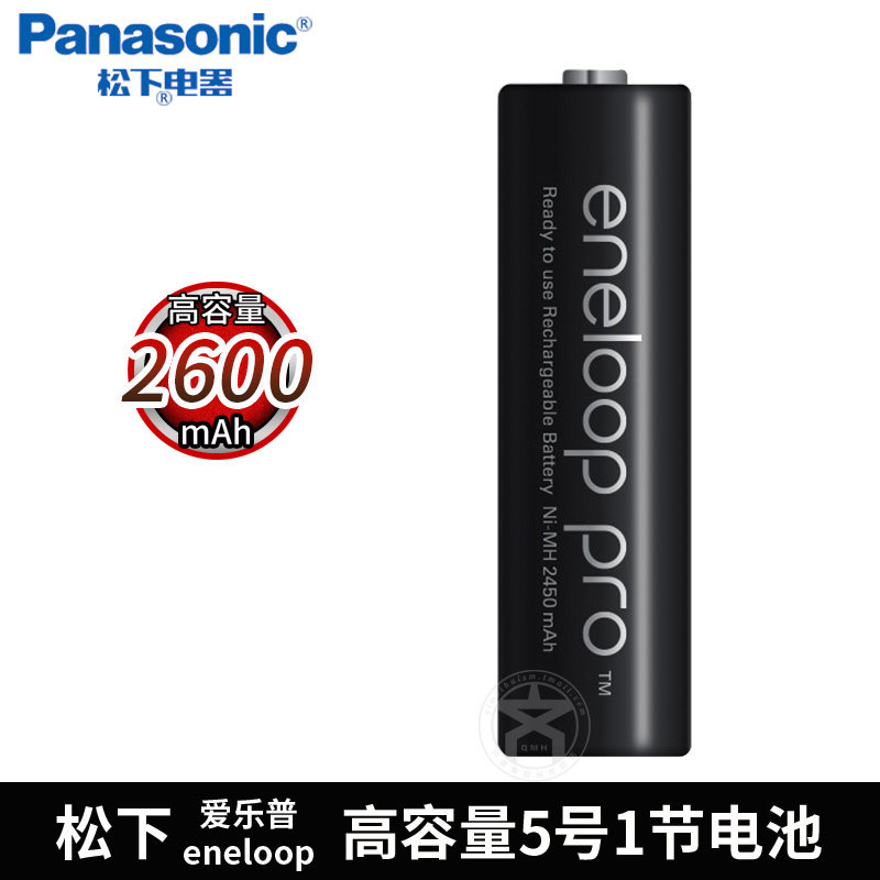 【单节】松下爱乐普 黑色5号可充电电池1节 AA高容量2600毫安 散装单卖1粒 三洋eneloop爱老婆四代五号充电池