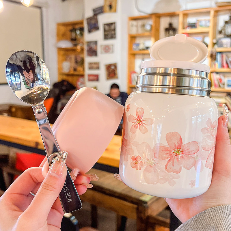 便携燕窝银耳羹杯樱花焖烧壶不锈钢保温杯子上班族养生早餐闷烧杯