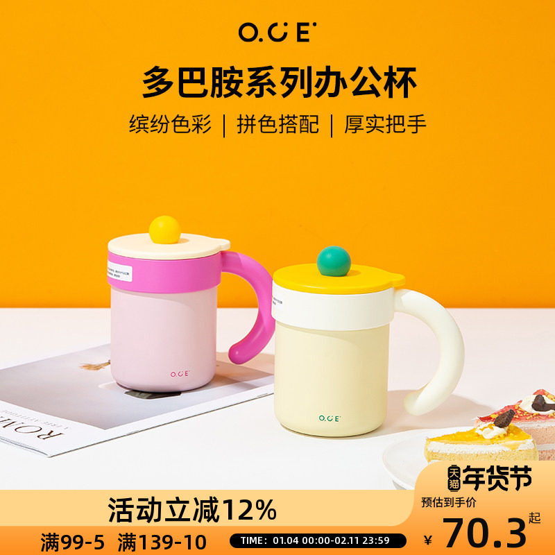 OCE多巴胺办公杯不锈钢保温杯带盖女316不锈钢家用办公室咖啡杯