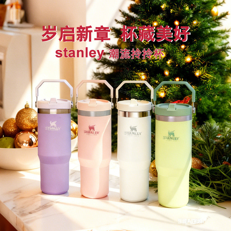 STANLEY拎拎杯折叠吸管杯水杯保冷高颜值男女不锈钢保温杯子887ml
