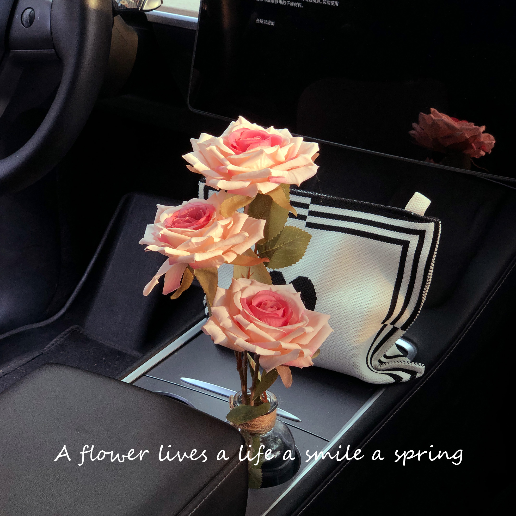 车载曼塔玫瑰内饰氛围摆件车x上中控台网红花束装饰创意小花瓶摆