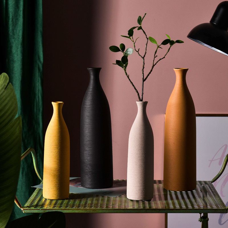 北欧莫兰迪拉丝陶瓷花瓶干花装饰摆件客厅插花现代简约创意小花瓶