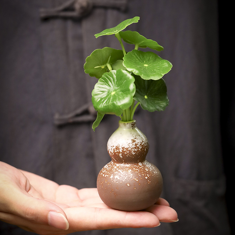 禅意迷你花器小花瓶装饰客厅茶桌茶宠摆件器皿花盆创意绿萝粗陶瓷