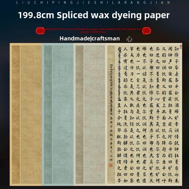 本悦蜡染书法作品宣纸四尺六尺对开整张彩色半生半熟小楷仿古洒金鱼籽金毛笔书法创作专用国展投稿楷书宣纸