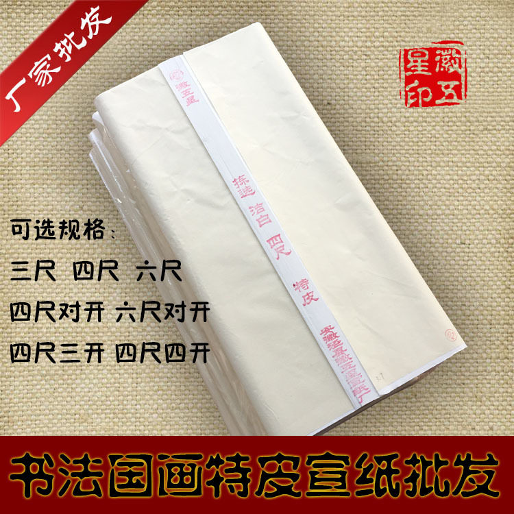 安徽五星牌加厚生宣纸半生熟净皮檀皮宣书法国画参赛考级三尺四尺整张六尺对开斗方花鸟山水画作品创作专用纸